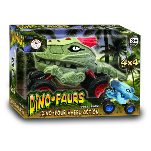 Aeromax Dino-Faur Pull Back Dinosaur Truck, Green with Red Accent