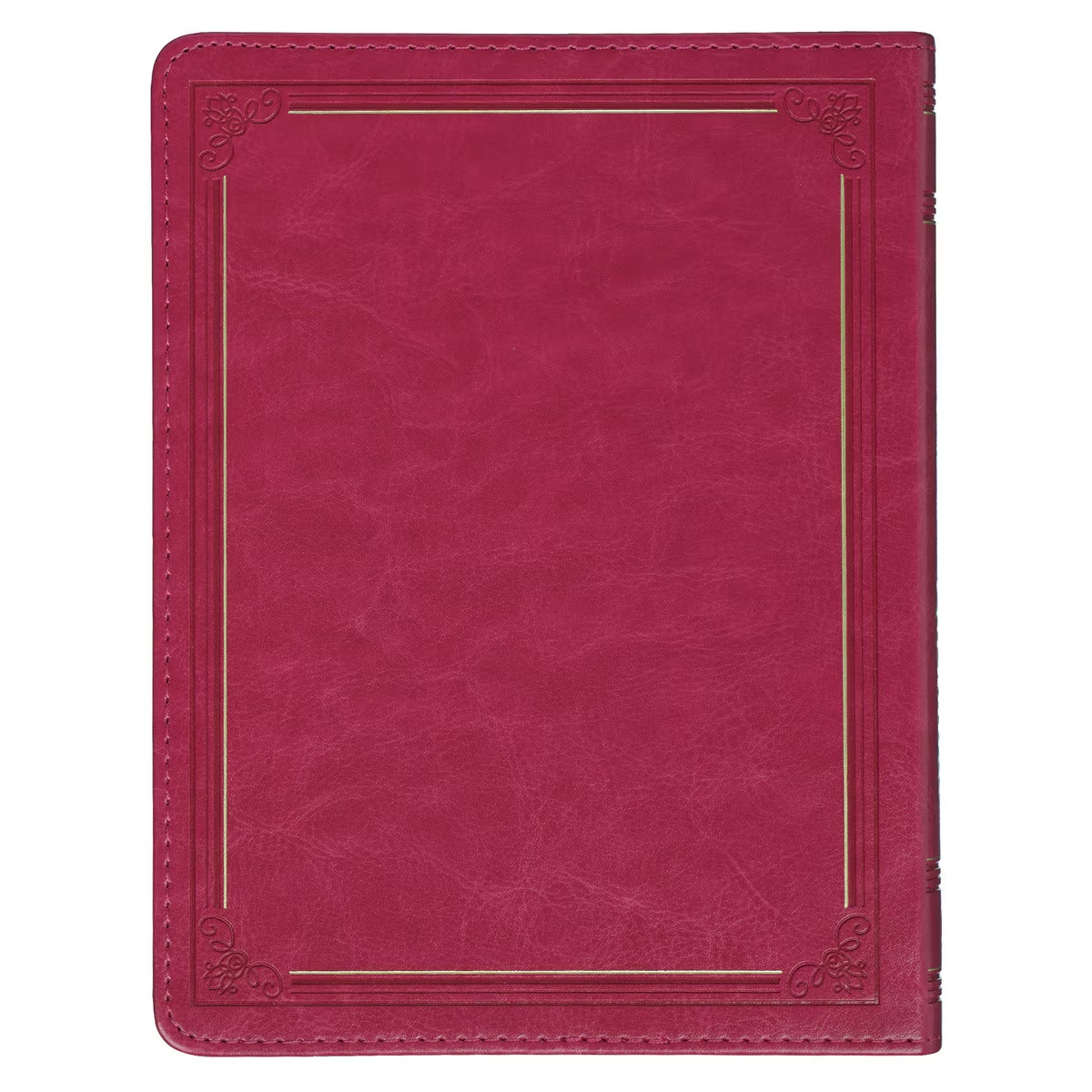 The prayer and journaling guide features an eye-catching, deep, raspberry-red faux leather cover with a luxurious and sophisticated feel. An elaborate heat-debossed border with detailed corner scroll designs frames the cover and is accented with a gold-foiled shadow line. A second notched frame with detailed heat-debossed and gold-foiled filigree accents houses the gold-foiled title. The top of the frame indicates in large, gold-foiled numbers that there are 199 prayers in the book. 199 Prayers for My Husband