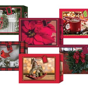 The interior of this Designer Greetings Christmas card design reads: A birthday in December means there are two reasons to celebrate… wonderful you and Christmas, too – Now, that’s the icing on the cake! Happy Birthday and Merry Christmas. The card measures 5.25×7.5 inches and is printed on heavy cardstock. Includes 1 card and 1 envelope. The card has the following special features: non-flake glitter, spot uv coating, embossed, insert, full color interior.