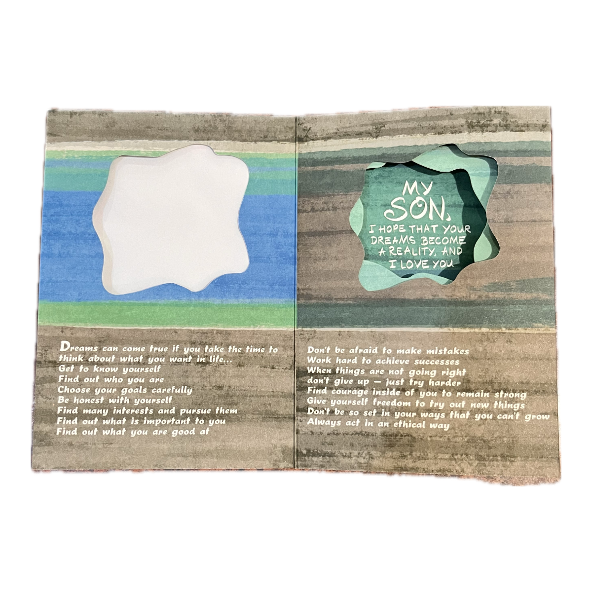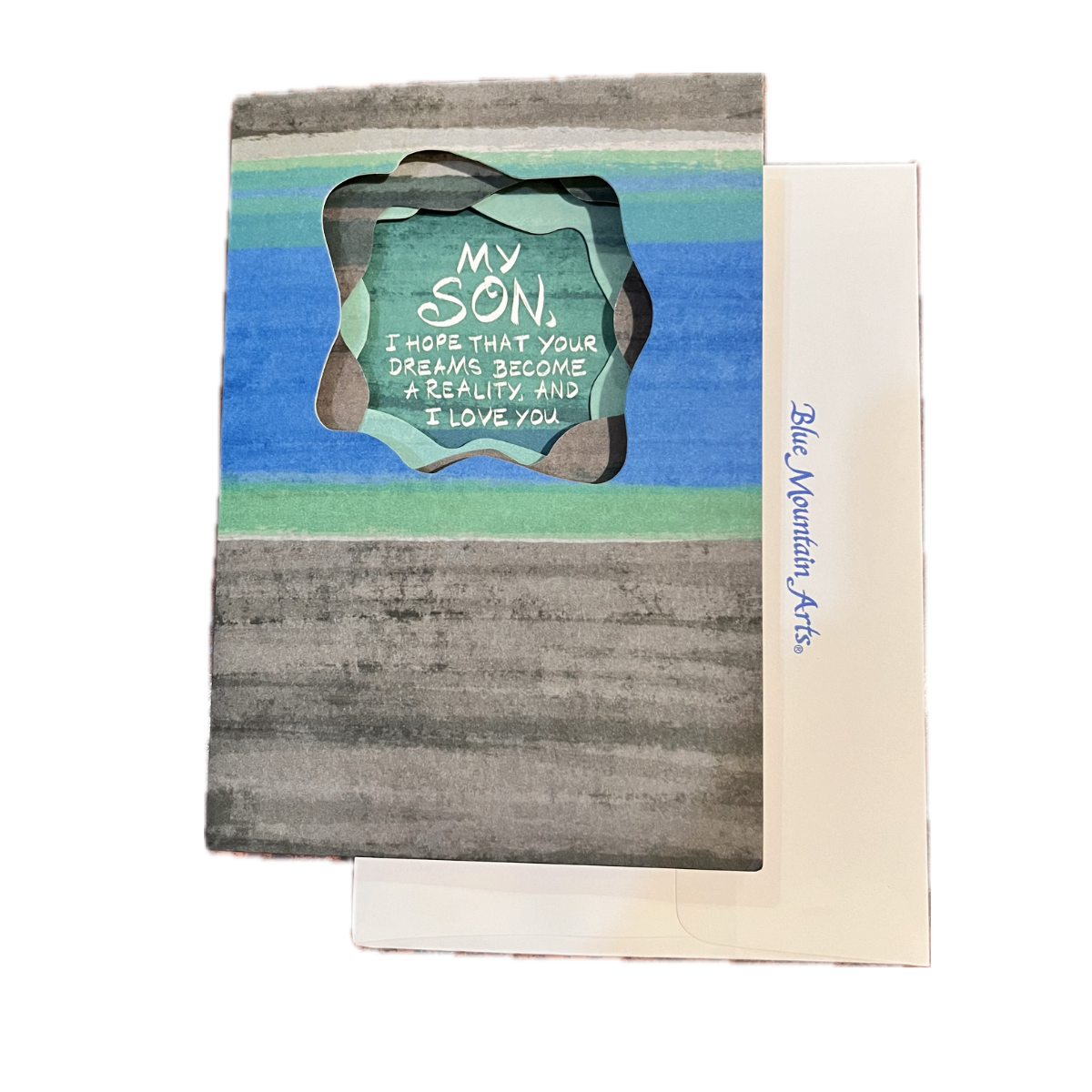 The uplifting message and whimsical design make this more than just a card… it’s a gift from the heart for a son to keep as a forever reminder that he is deeply loved.