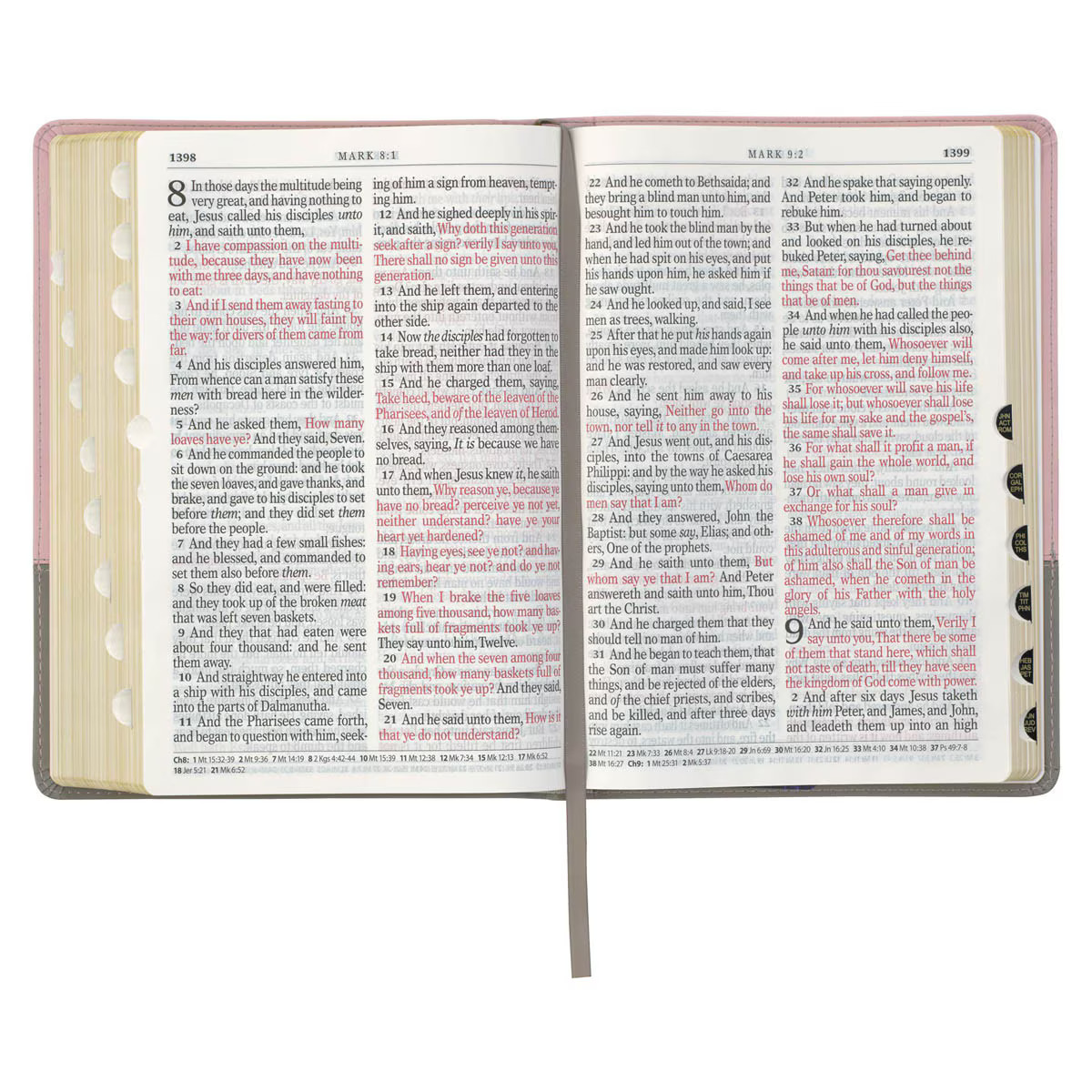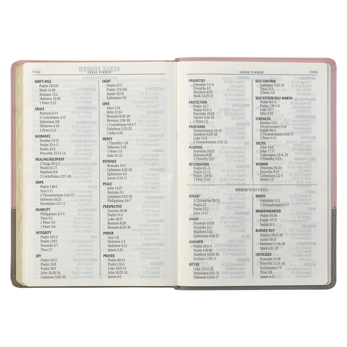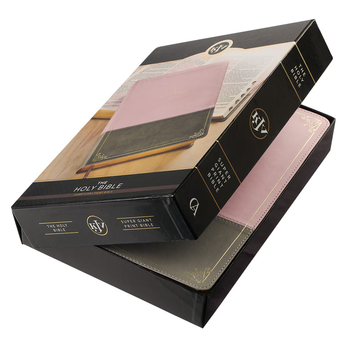 The sleek modern design of the Pink and Gray Faux Leather Full-size Super Giant Print King James Version Bible with Thumb Index is the perfect Bible for the woman with a modern style who appreciates the contributions of the past. This Bible features the Classic King James Version text in an updated jacket printed in a Super Giant Print font.