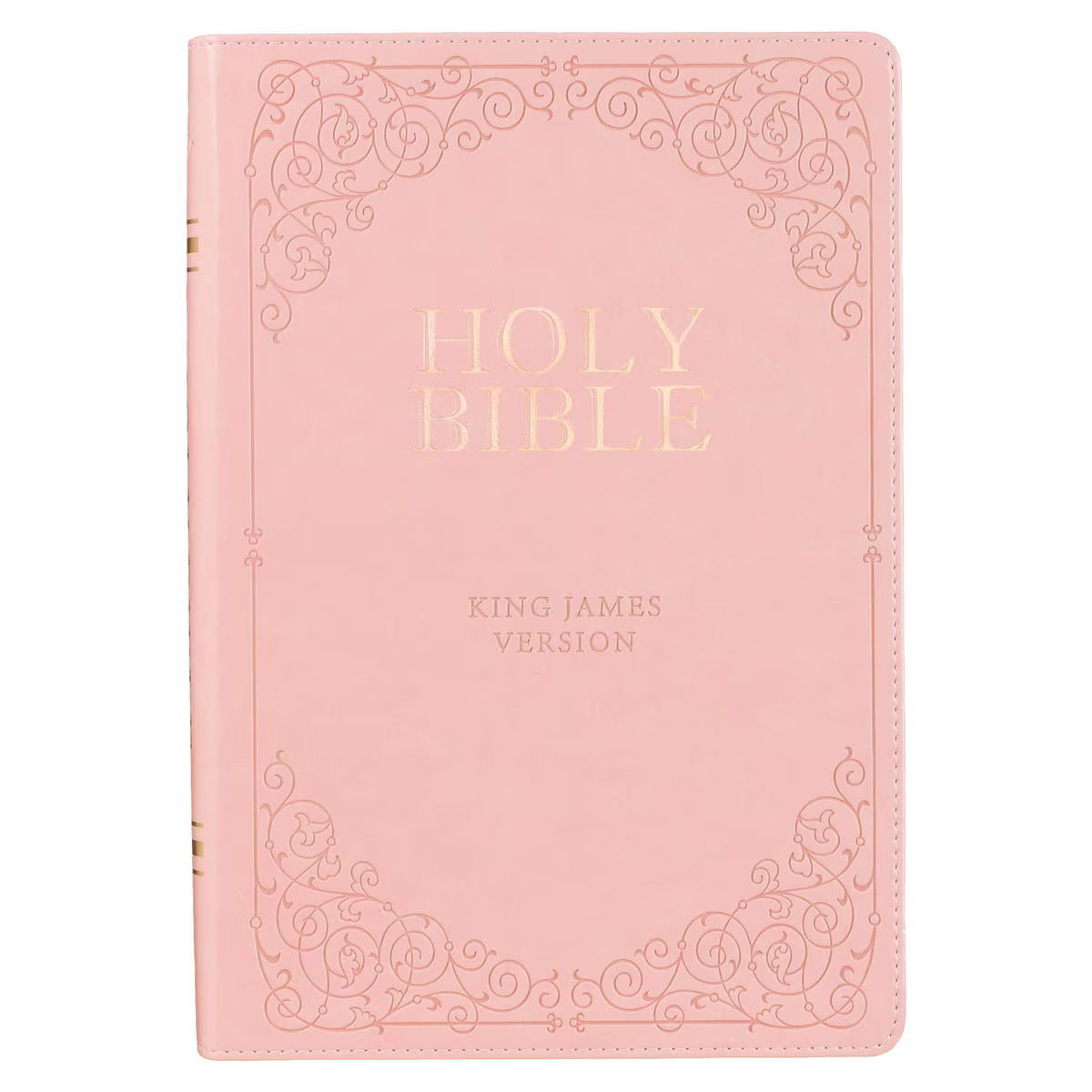 The Pink Faux Leather Giant Print Full-size King James Version Bible with Thumb Index is the perfect Bible for the woman who raised you—be it a mother, grandmother, aunt, teacher, or mentor. The easy-to-read 14-point type print will ease the strain on her eyes when she settles in for her daily quiet time with the LORD.